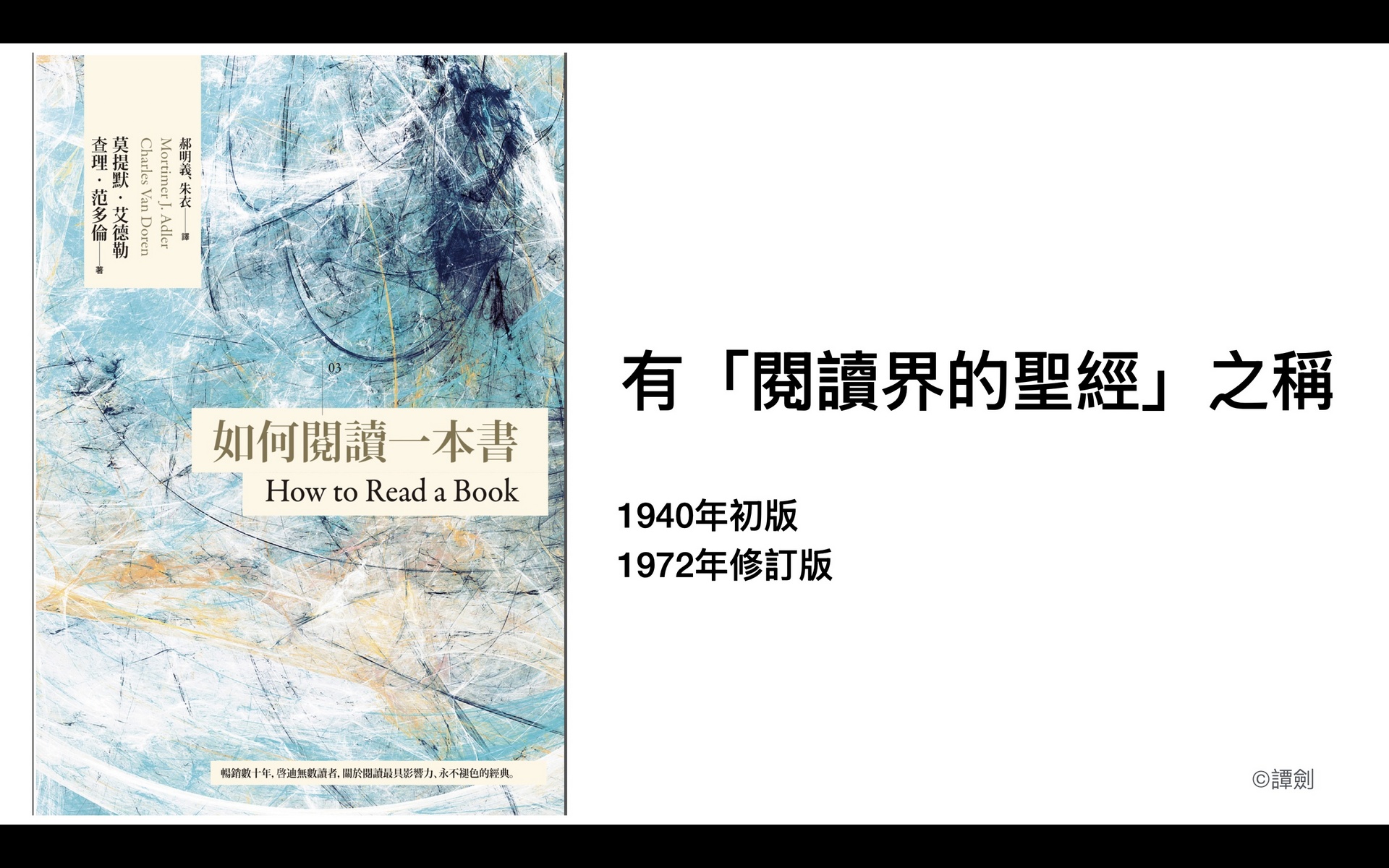 然⽽,學校只是向我們傳授知識,並沒有教導我們正確閱讀一本書的方法,我是在讀過美國作家阿德勒(Mortimer J. Adler)的《如何閱讀⼀本書》,才發現我和很多人一樣,幾十年來都用了錯誤的閱讀方法。