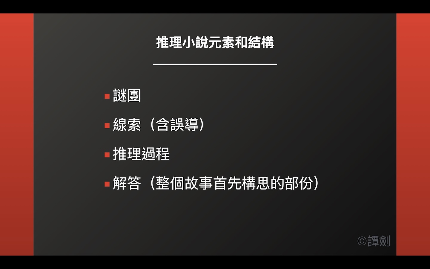 要創作以推理小說為主題的微型小說,必須掌握設計謎團的5W1H(who, where, when, why, what和how)、伏筆和推理過程。